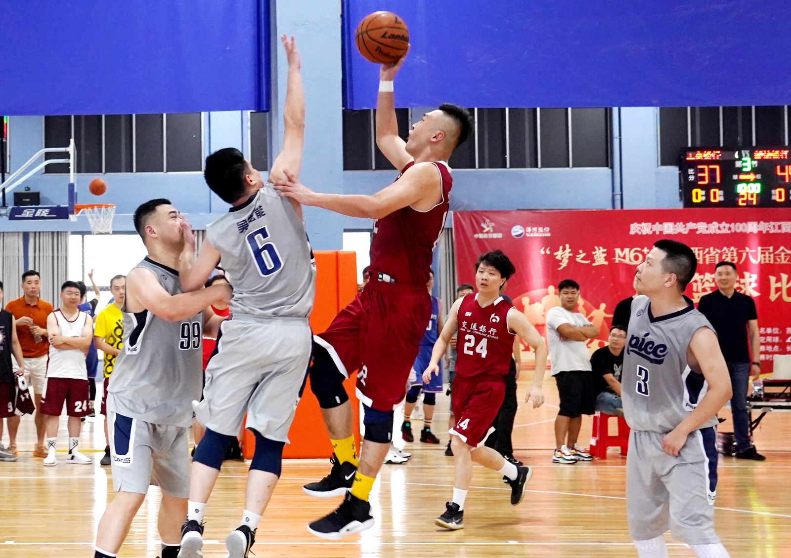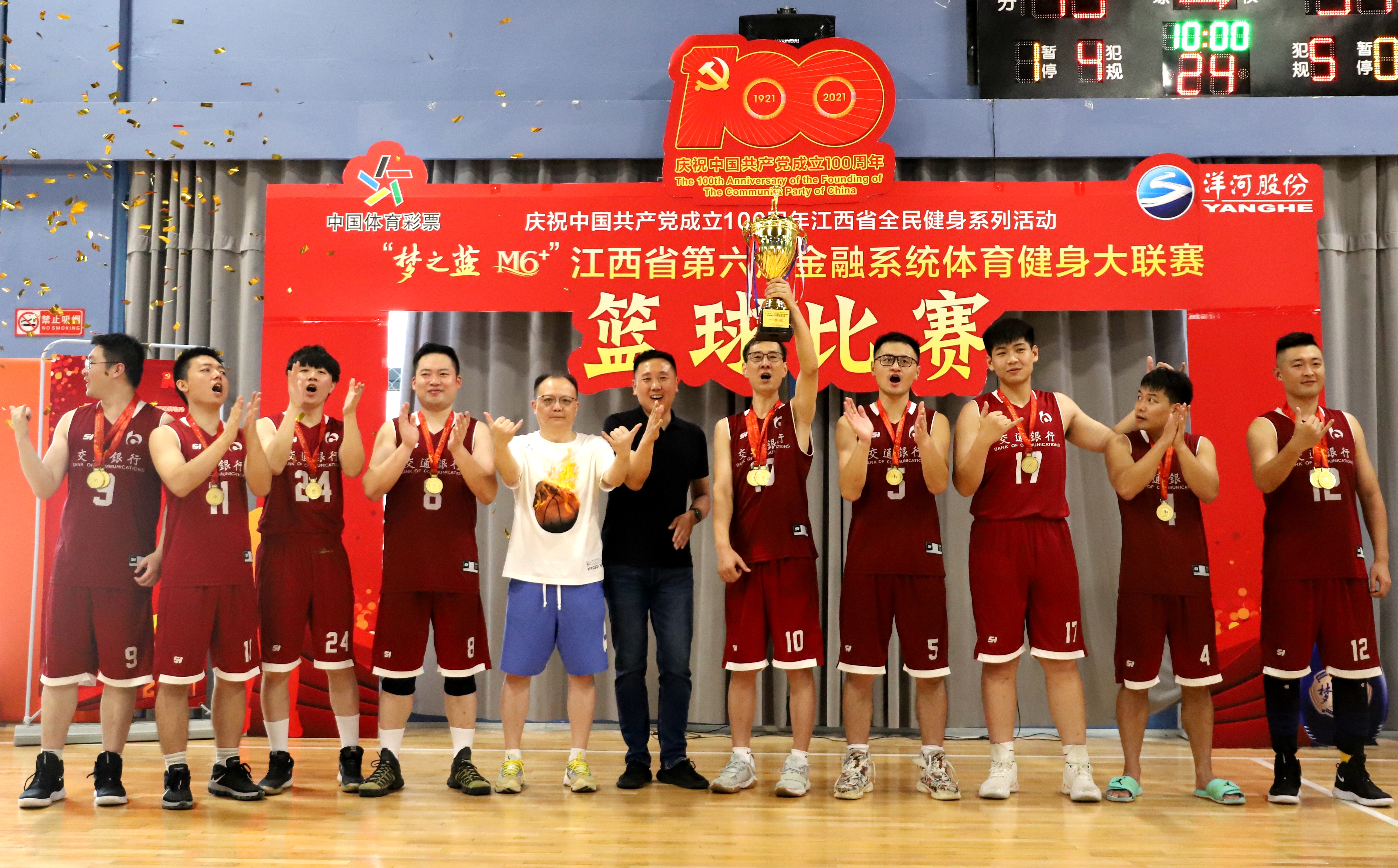 7月17日,“夢之藍M6+”江西省第六屆金融系統(tǒng)體育健身大聯(lián)賽籃球賽決賽在長榮羽毛球大廈籃球館舉行。決賽由人保財險代表隊對陣交通銀行代表隊,三到八名的排位賽同時進行。經(jīng)過激烈角逐,交通銀行代表隊戰(zhàn)勝人保財險代表隊,蟬聯(lián)“金融杯”籃球賽冠軍。人保財險代表隊獲得亞軍,郵儲銀行代表隊獲得季軍,工商銀行代表隊、江西銀行代表隊、建設(shè)銀行代表隊、農(nóng)信社代表隊、廣發(fā)銀行代表隊分獲四到八名。蘇酒集團(洋河股份)南昌分公司總經(jīng)理吳凱,交通銀行江西省分行黨委委員、副行長、工會主席周志東,中國人民財產(chǎn)保險江西省分公司黨建工作部、黨委宣傳部、工會工作部總經(jīng)理孫慧琴,中國工商銀行江西省分行工會辦公室副主任王理,中國郵政儲蓄銀行江西省分行工會副主席徐艷,江西銀行機關(guān)工會主席吳慶豐,中國建設(shè)銀行江西省分行黨務(wù)工作部專家羅秋瑜,廣發(fā)銀行南昌分行副行長朱平云,江西省農(nóng)村信用社聯(lián)合社黨群工作部謝橞,江西省體育發(fā)展有限公司董事長沈紅斌到場觀賽并為獲獎球隊頒獎,蘇酒集團(洋河股份)南昌分公司總經(jīng)理吳凱為冠軍隊伍頒獎。